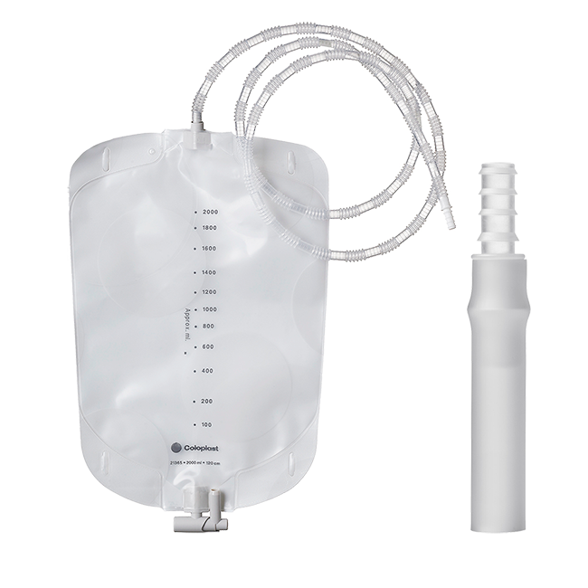 With a capacity of two litres and an adjustable anti-kink tube 120 cm long, the Coloplast urostomy night bag allows for a comfortable nights’ rest.