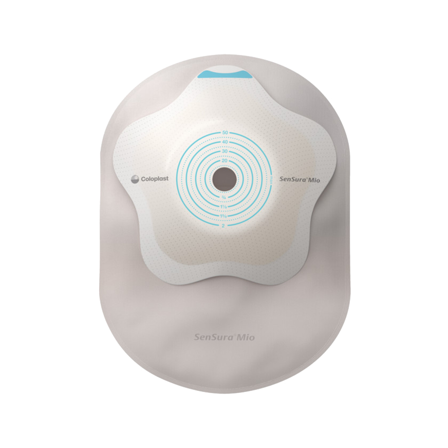 SenSura Mio Concave is a new range of ostomy products that fits outward body profiles due to the elastic adhesive and curved, star-shaped baseplate.