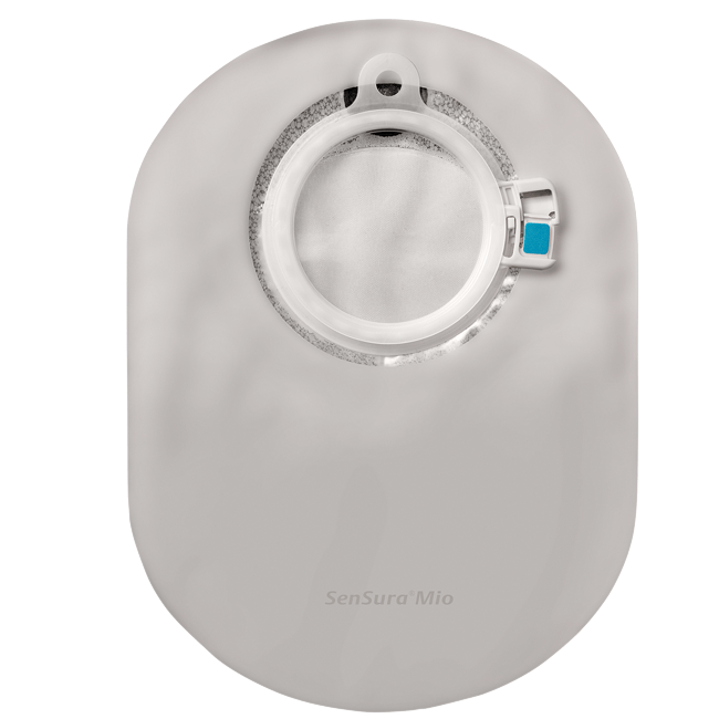 With SenSura Mio Click closed, the baseplate with the elastic adhesive is separate from the pouch, so the pouch can be changed without changing the baseplate. The pouch is coupled to the baseplate by means of the new Click coupling, which gives an audible “click” when the pouch is securely locked to the baseplate. SenSura Mio Click closed is available in a broad range of flat baseplates consisting of various pre-cut or hole sizes which can be customized, with pouches in a variety of sizes available in transparent or neutral grey and with coupling systems of 40, 50, 60 or 70 mm in diameter.